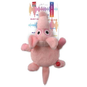 Plyšová hračka ve tvaru zvířátka s tichým pískáním. Barva: růžová, Materiál: Plyšové