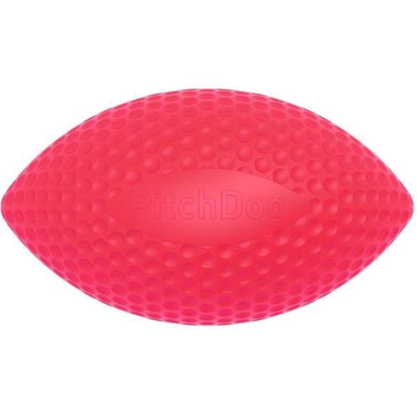 Pěnový ragbyový míč PitchDog je vhodný pro aportování na souši i ve vodě. Díky svému tvaru po dopadu na zem nepředvídatelně odskakuje, čímž ještě víc podněcuje lovecký instinkt psa.  Barva: červená, Materiál: Pěnové