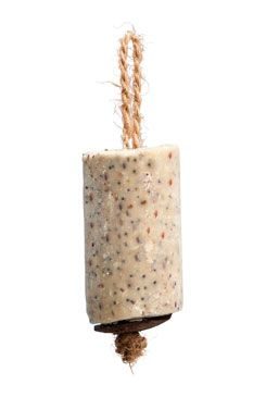 Lojový válec s arašídy na provázku je určen pro volně žijící ptáky. Válec poskytuje základní živiny pro správný a zdravý vývoj.