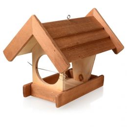 Dřevěné krmítko pro venkovní ptactvo s napichovacím drátkem pro lojové pochoutky. Lze zavěsit za očko, které je umístěno ve stříšce