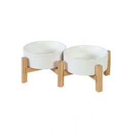 Dvě keramické misky na protiskluzové bambusové podnoži vhodné pro psy i kočky. 2 keramické misky pro psy i kočky v elegantním designu. Misky jsou na společné bambusové podnoži, která je opatřena protiskluzovými podložkami.