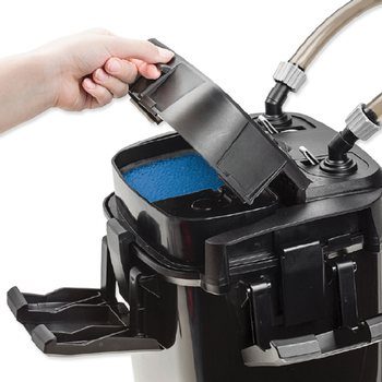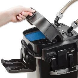 Velký počet filtračních patron umístěných v koších, z nichž každý má objem 1,9 litru, zajišťuje účinnou mechanickou a biologickou filtraci. Počet košů se v závislosti na zvoleném modelu pohybuje od 3 do 5. Vestavěný houbový předfiltr o objemu přibližně 0,6 litru zachycuje hrubší mechanické nečistoty a zabraňuje jejich pronikání do vnitřku filtru. Tím je zajištěna vynikající účinnost filtrace a zároveň je přístroj chráněn před ucpáním. Čištění předfiltru je navíc velmi snadné a nevyžaduje ani odpojení filtru od sítě nebo jeho vyjmutí ze skříně. Stačí pouze zvednout víko, vyjmout houbu z koše a opláchnout ji pod tekoucí vodou.