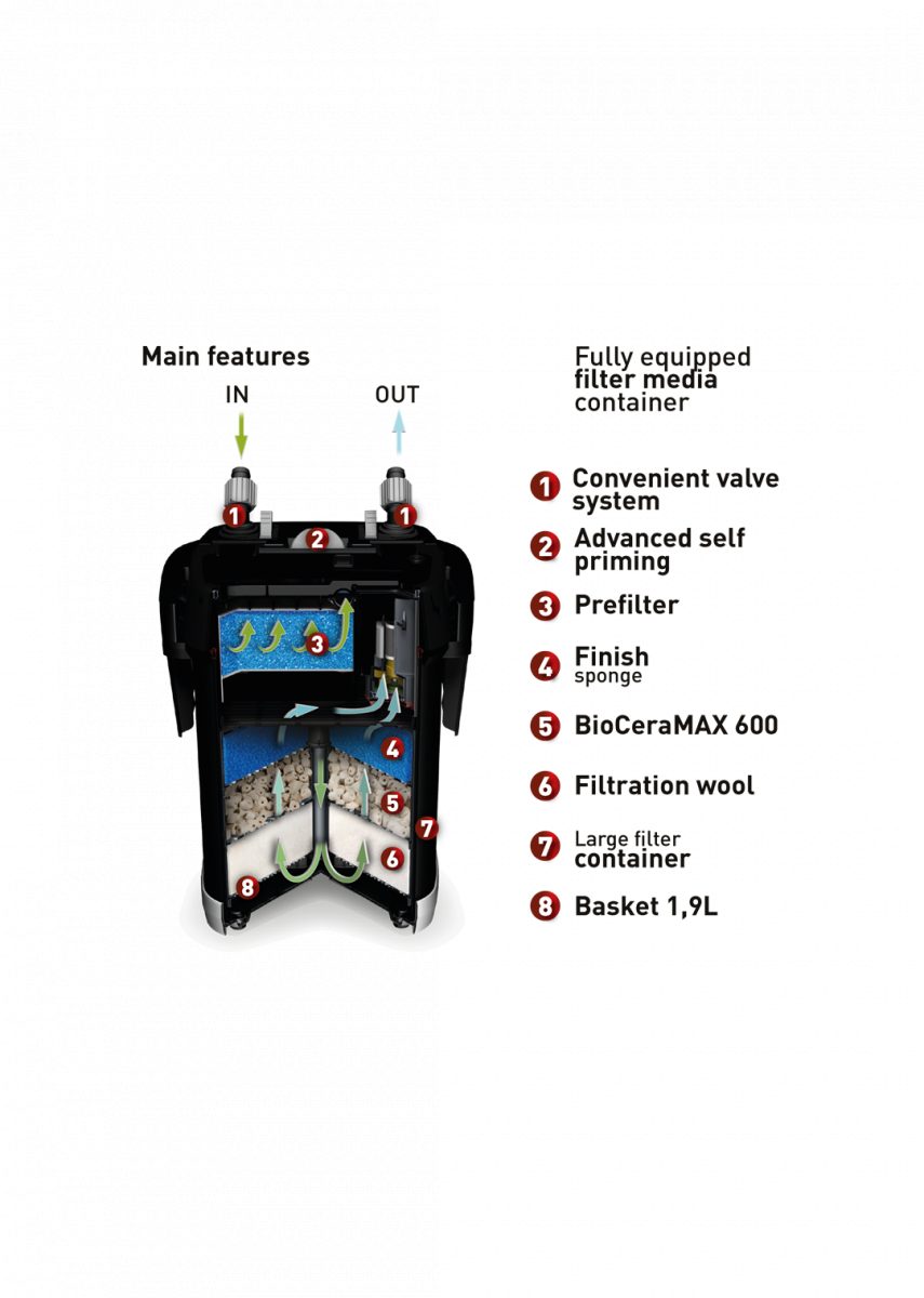 Špičkový kanystrový filtr, který si získal uznání akvaristů po celém světě. Je vybaven patentovanými řešeními pro vynikající výkon a uživatelskou přívětivost. Zajistí dokonalou čistotu vody v těch nejnáročnějších nádržích, sladkovodních i mořských.