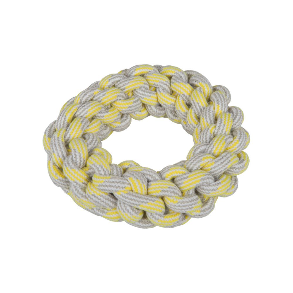 Bavlněný kroužek z příjemného materiálu je vhodná hračka pro psy (velká až obří plemena), kteří si chtějí zkrátit dlouhou chvíli při odpočinku nebo aportování. Hračku je možné házet, kutálet, přetahovat.