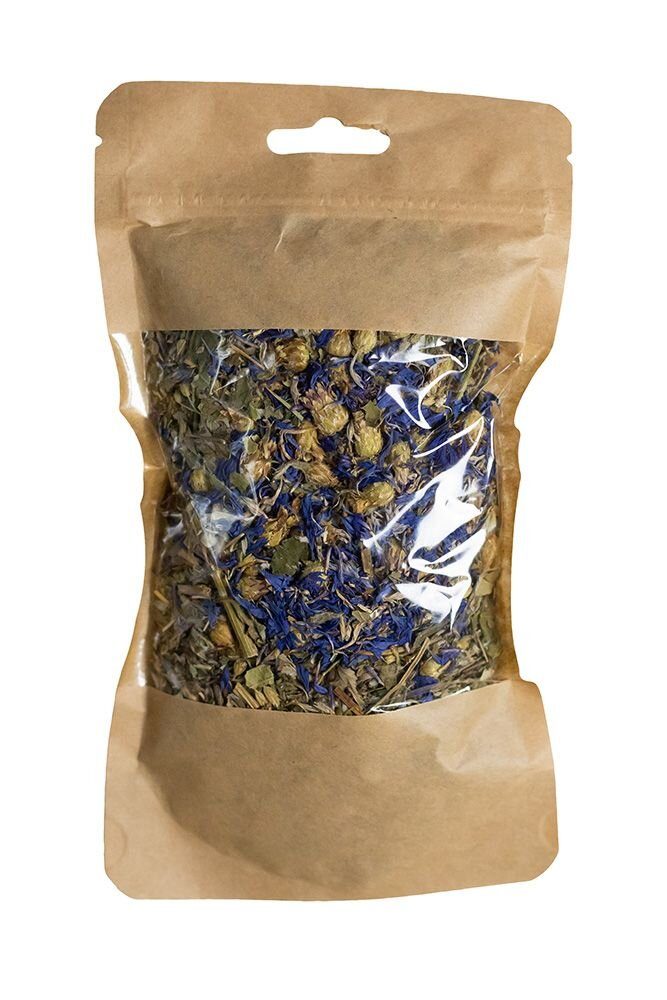 list jahodníku 30%, list rybízu 30%, řebříček květ 25%, chrpa květ 15%