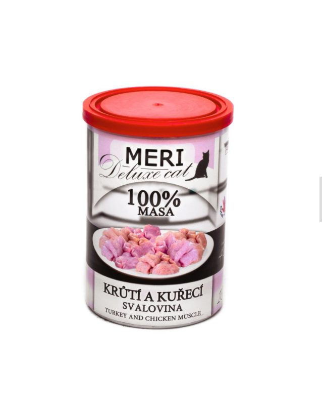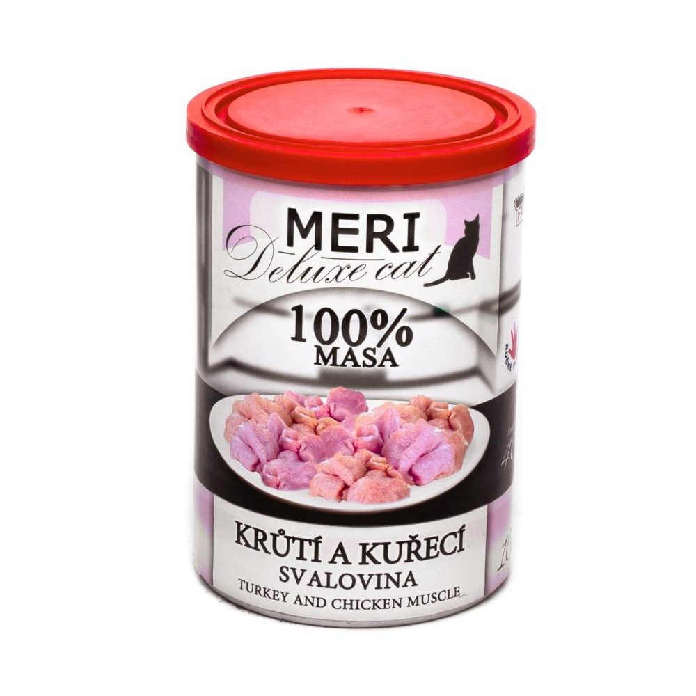 MERI Deluxe Cat krůtí a kuřecí svalovina, konzerva 400 g