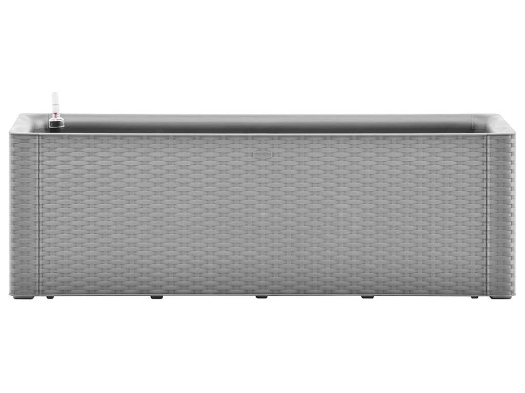 Samozavlažovací truhlík, pro vnitřní i venkovní použití, s ukazatelem hladiny vody, z polypropylenu, barva šedá, o objemu 90l, rozměry 100x43x33cm.