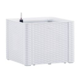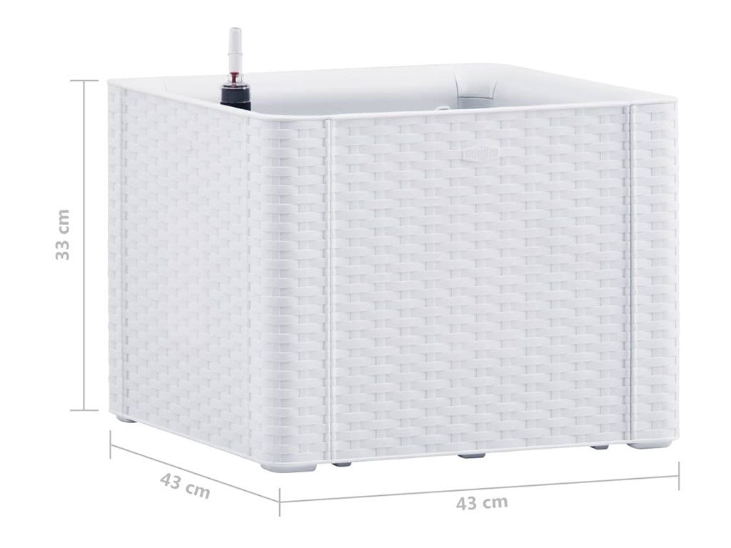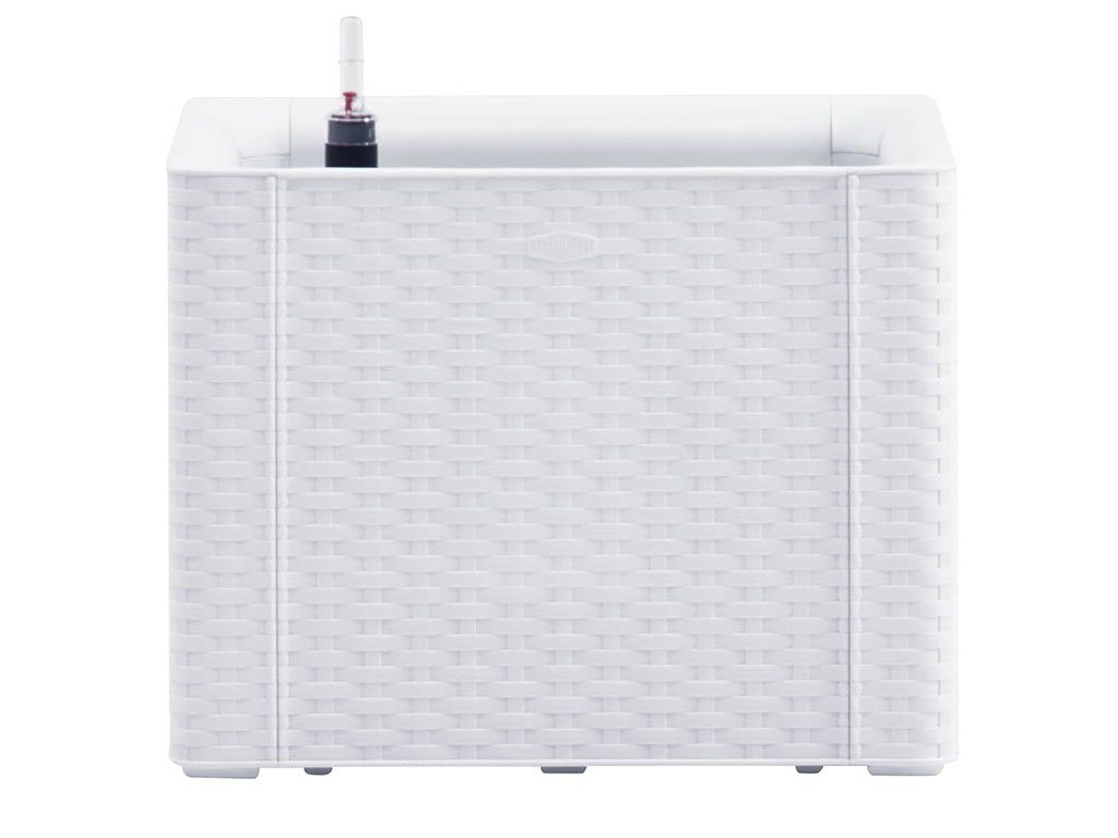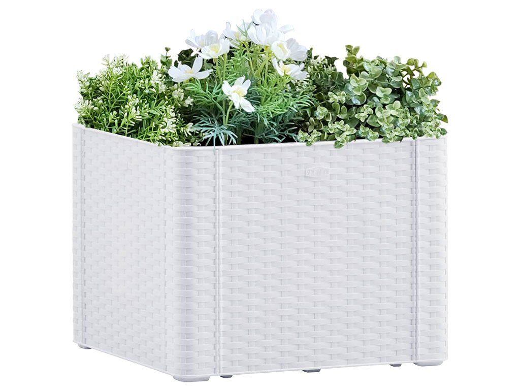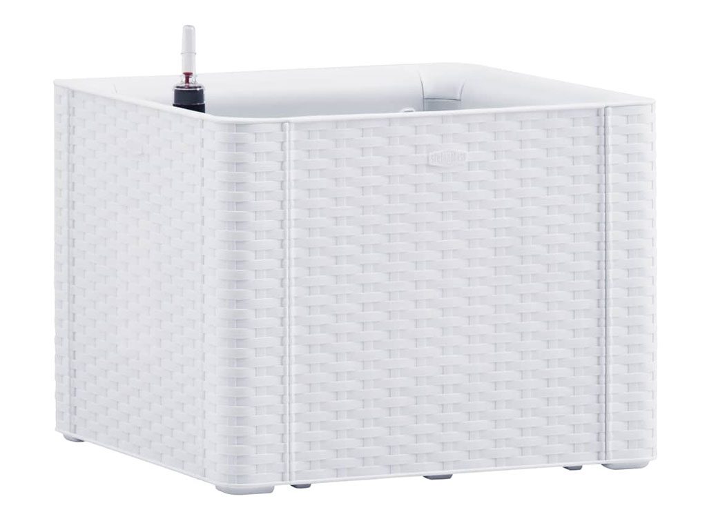 Samozavlažovací truhlík, pro vnitřní i venkovní použití, s ukazatelem hladiny vody, z polypropylenu, barva bílá, o objemu 35l, rozměry 43x43x33cm.