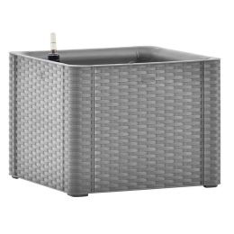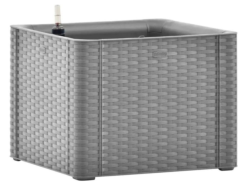 Samozavlažovací truhlík, pro vnitřní i venkovní použití, s ukazatelem hladiny vody, z polypropylenu, barva šedá, o objemu 35l, rozměry 43x43x33cm.