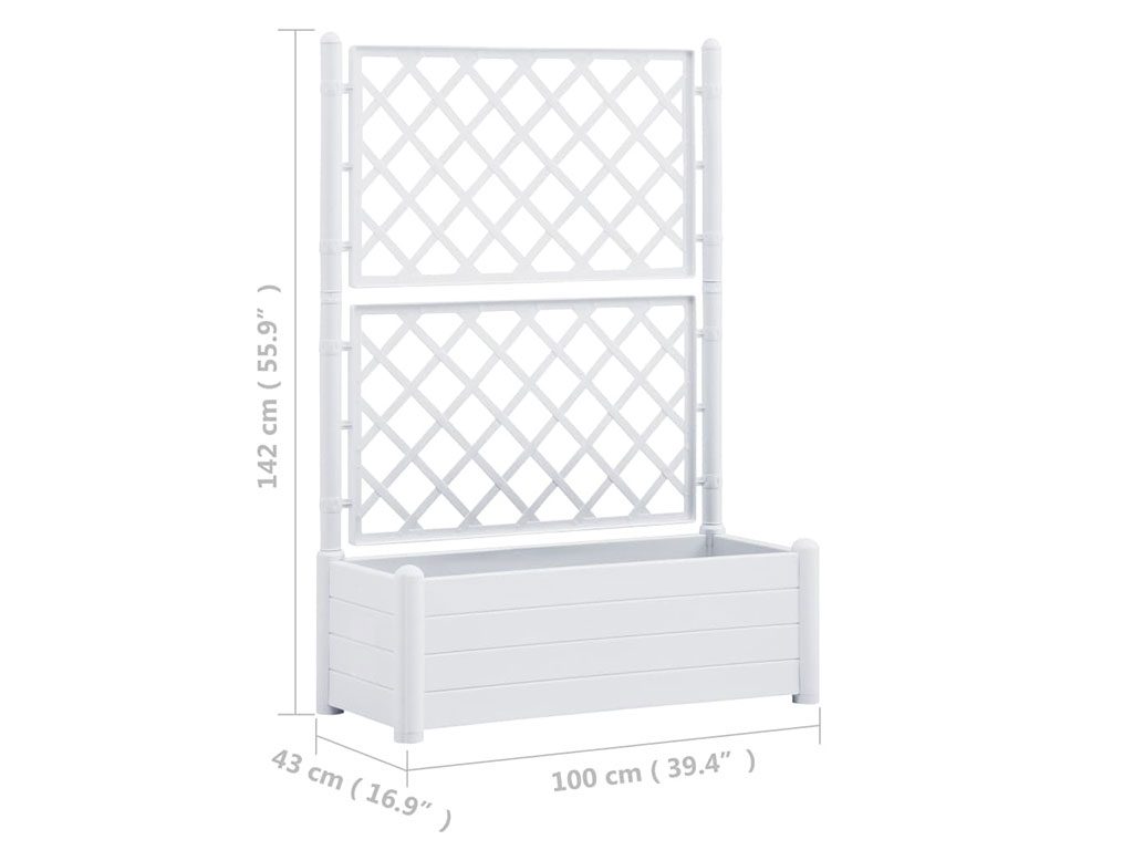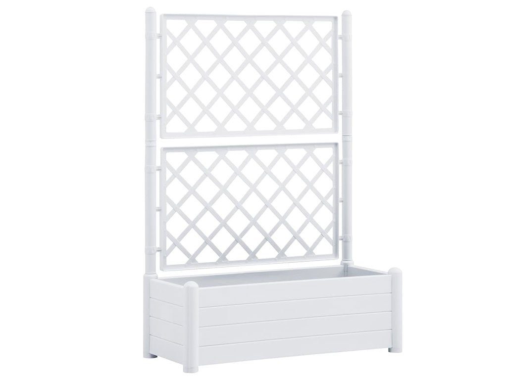 Truhlík s mřížkou, drenážním dnem, pro venkovní použití, z polypropylenu, barva bílá, o objemu 80l, rozměry 100x43x142cm.