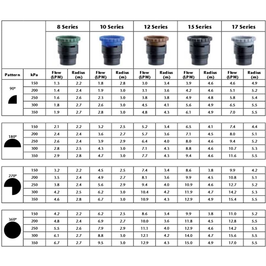 Tryska TVAN 8 dostřik 2,4 m (0° - 360°)Trysky s nastavitelnou výsečí Toro Variable Arc Nozzles (TVAN) jsou navrženy pro vynikající účinnost zavlažování a maximální všestrannost použití.