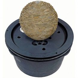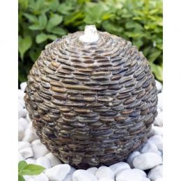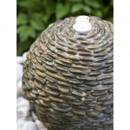 Dekorační fontánový prvek vyroben z přírodního kamene v kombinaci světlého a tmavého barevného odstínu kamínků.