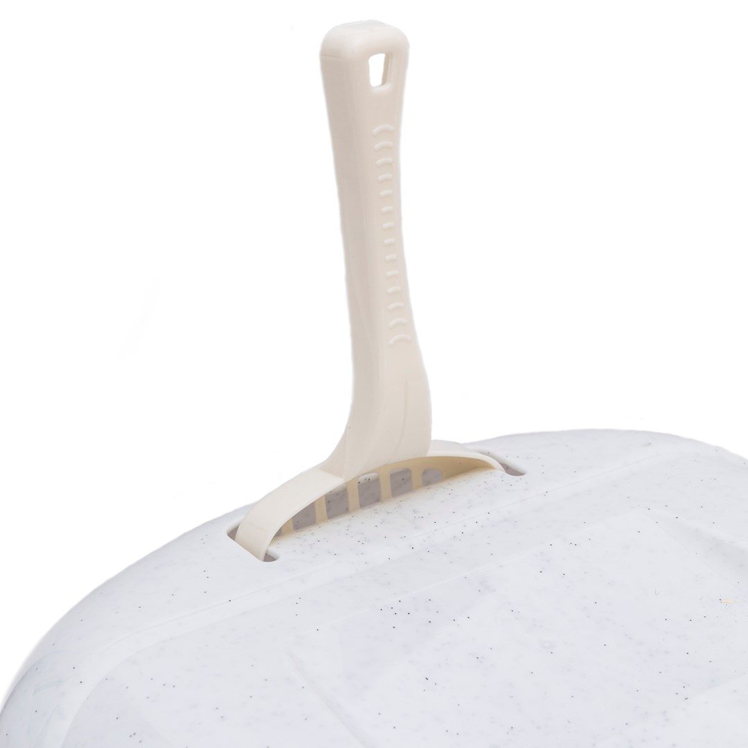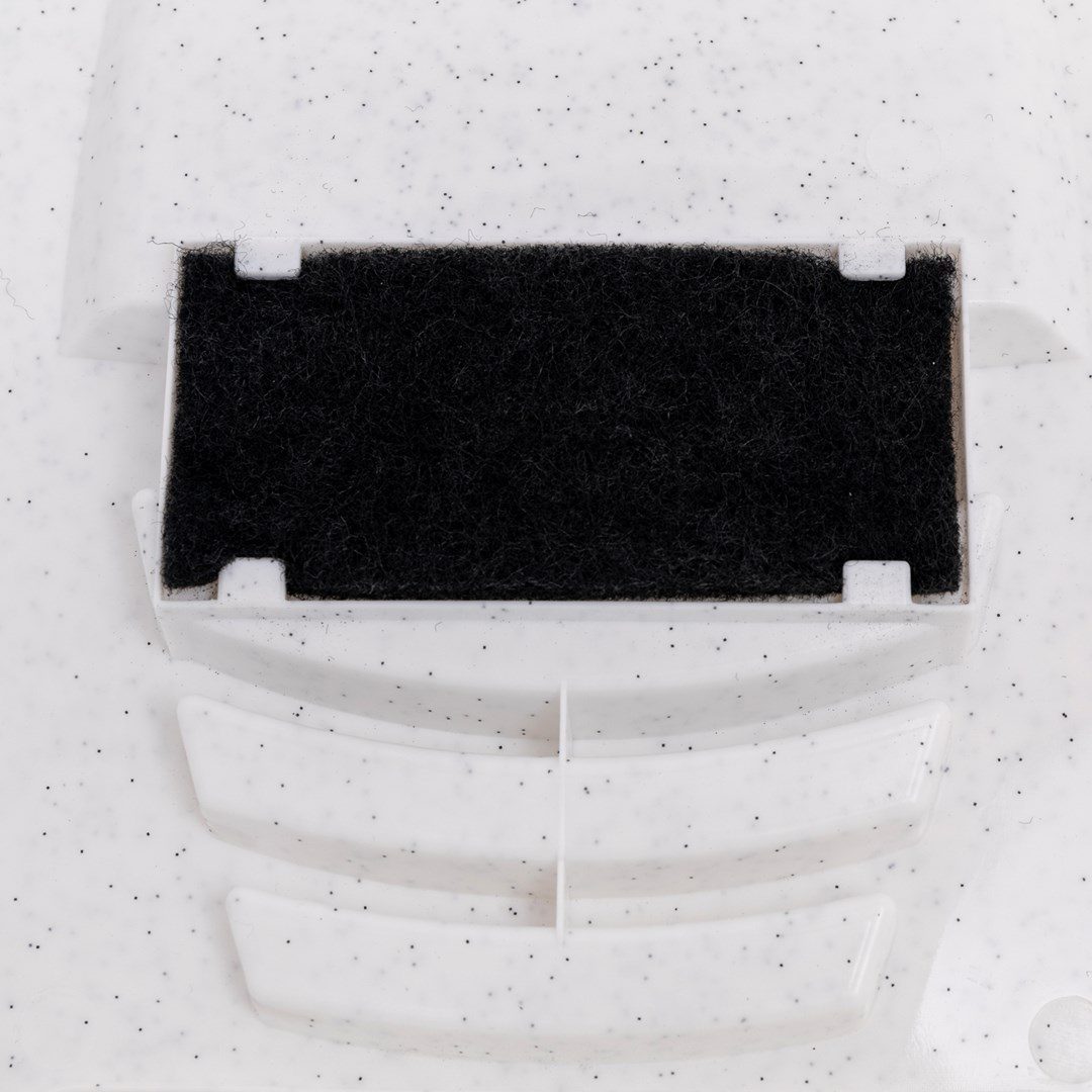 Toto řešení je ideální, pokud nemáme prostor pro izolaci kočičího záchodku. Zakrývá obsah a díky zabudovanému uhlíkovému filtru ještě lépe zadržuje pachy. Dalšími výhodami jsou chytrý držák na lopatku (je součástí dodávky) a střízlivé barevné provedení (na výběr jsou 2 barvy).