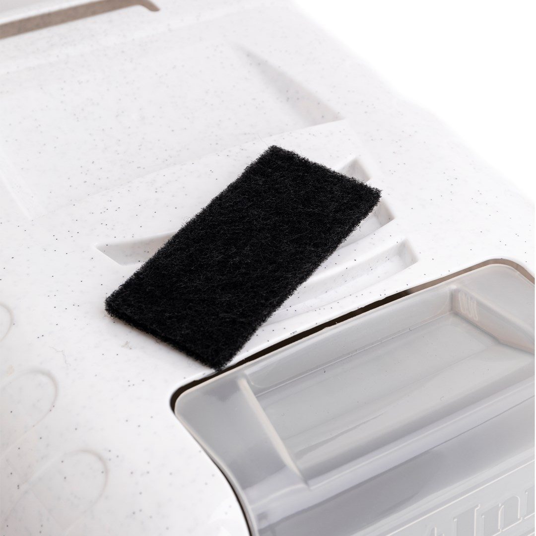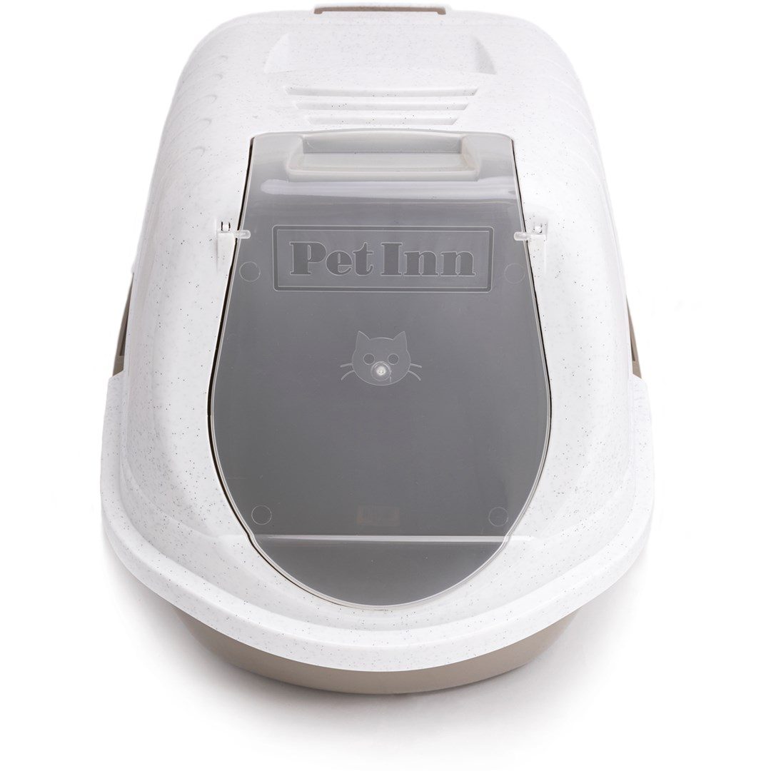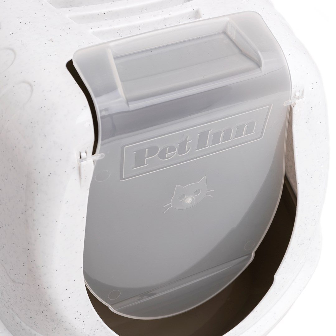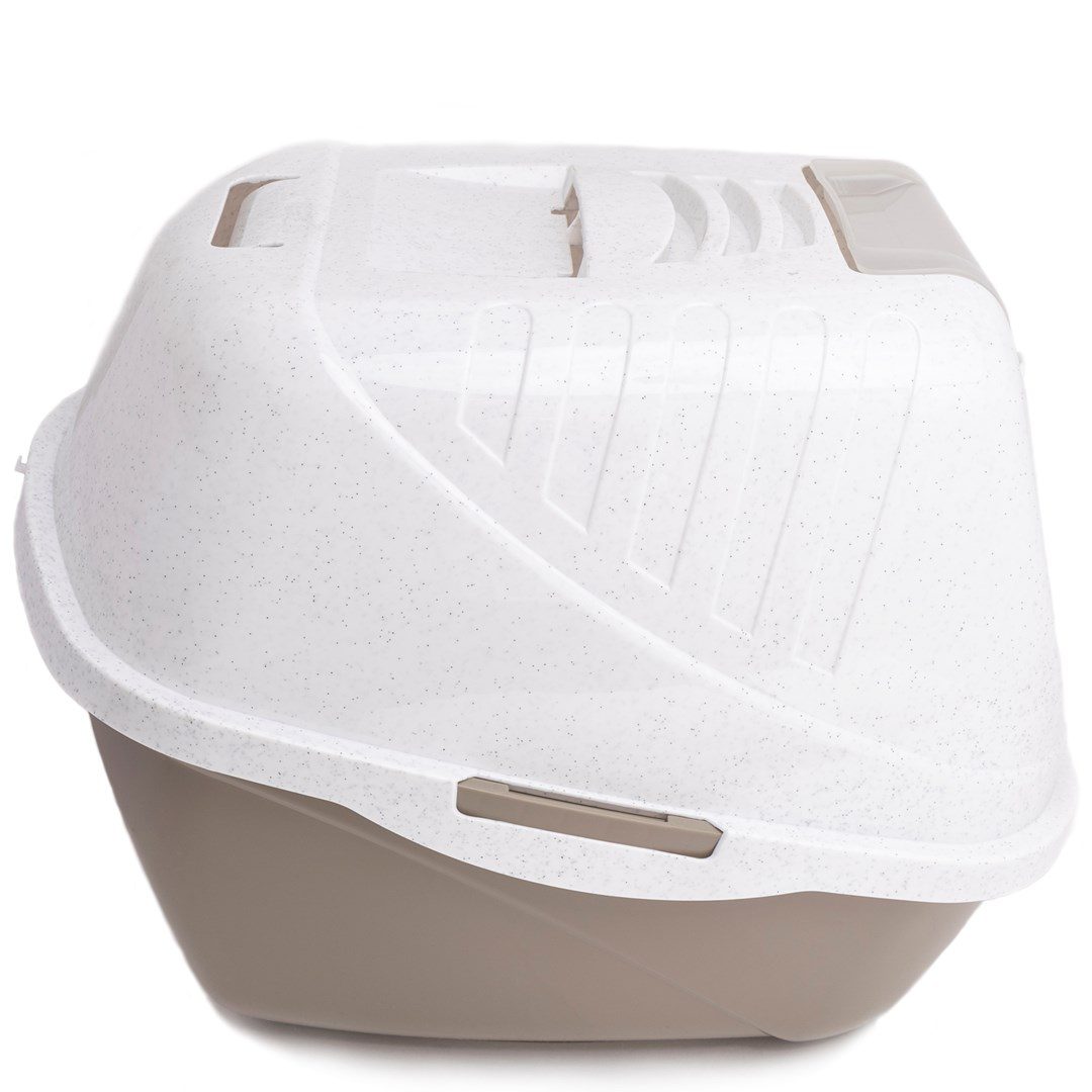 Toto řešení je ideální, pokud nemáme prostor pro izolaci kočičího záchodku. Zakrývá obsah a díky zabudovanému uhlíkovému filtru ještě lépe zadržuje pachy. Dalšími výhodami jsou chytrý držák na lopatku (je součástí dodávky) a střízlivé barevné provedení (na výběr jsou 2 barvy).