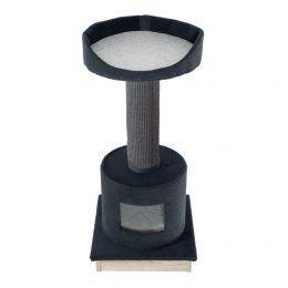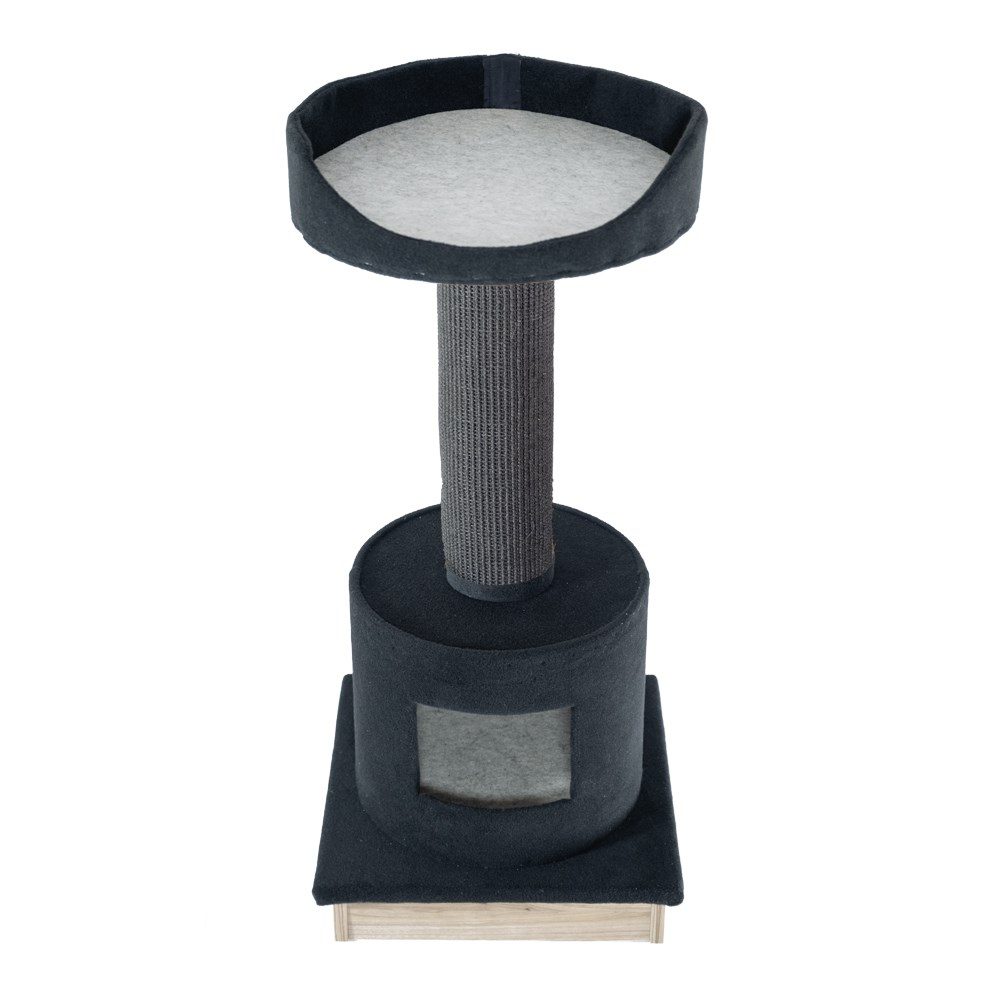 Paul má velkou škrábací plochu, poličku pro odpočinek a pozorování, box-nohu, kterou lze použít jako úkryt, a měkký míček na provázku na hraní.Na spodní stranu škrabadla byla připevněna základna z nábytkových desek, takže výrobek je skvělým doplňkem každého interiéru. Paul je k dispozici ve dvou barevných variantách: černošedé nebo černobéžové. Byl vyroben v Polsku.