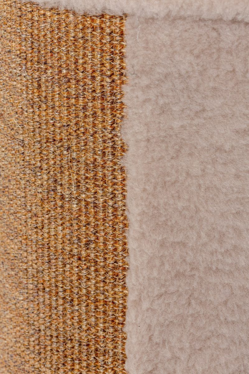 Díky látce použité na čalounění si zvíře může brousit drápky na polovině jeho povrchu. Druhá polovina škrabadla je čalouněná estetickým plyšem. Výrobek se dodává se dvěma odnímatelnými plstěnými podložkami pro libovolnou konfiguraci. Odkrytá nábytková deska na horní straně škrabadla může bez obav fungovat jako stolek, stojan na květiny nebo další prostor pro kočku. Škrabadlo Tube Eco je k dispozici s čalouněním v béžové nebo šedé barvě a jeho dřevěné části jsou v různých odstínech. Škrabadlo bylo vyrobeno v Polsku ze surovin, které jsou ze 40 % recyklované