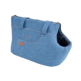 Transportní taška Denim je ideální volbou na každou cestu. Vyrobena z džínoviny odolné proti poškození. Jedná se o materiál nejvyšší kvality, který zajišťuje krásný vzhled po dlouhou dobu. Z horní strany se taška zapíná na zip. Kromě toho jsou na bocích všité popruhy, díky kterým se pohodlně nosí na rameni. Ucha mají optimální délku, která zajišťuje pohodlí. Uvnitř se nachází krátké vodítko s karabinou, aby bylo možné psa bezpečně připoutat a ten během přepravy nevyskočil. Díky výsuvné podlaze je taška pro vašeho mazlíčka pohodlnější. Usnadňuje také její udržování v čistotě. Po stranách jsou všité kapsy pro uložení drobného příslušenství. Tvar a materiály, ze kterých je taška vyrobena, z ní dělají nepostradatelnou součást každé cesty.