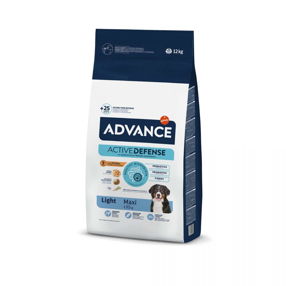 Advance Adult Maxi Light je krmivo pro psy se sklonem k přibírání na váze. Díky složení s nízkým obsahem tuku pomáhá kontrolovat hmotnost. Vysoký obsah vlákniny a bílkovin pomáhá uspokojit chuť k jídlu a udržet svalovou hmotu. Specifické vlastnosti: Light – psi s nadváhou, Stáří psa: Dospělý, Velikost plemene: Malé 5-10 kg, Velké a obří nad 25 kg, Střední 10-25 kg