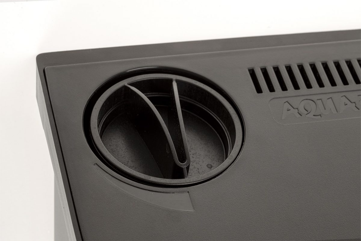 Výstupní otvor filtru je v jedné rovině s povrchem, takže vytékající voda vytváří uším příjemný šum. Zapomeňte na bublání nebo hlučné přelévání vody.