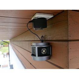 Zařízení je napájeno přes 12V adaptér, který je součástí balení. Odpuzovač disponuje praktickými vypínači v ochranném pouzdru, díky kterým můžete plašení jednoduše vypnout a zapnout, jak ultrazvuk tak i záblesky, bez nutnosti vypojit adaptér ze sítě.