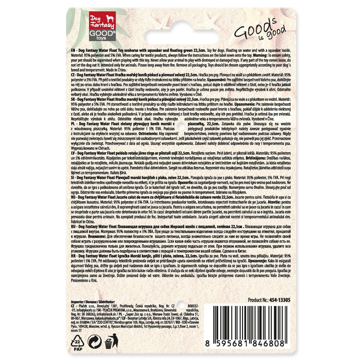 Hračka Dog Fantasy Water Float mořský koník pískací a plovoucí zelená 22,5cm