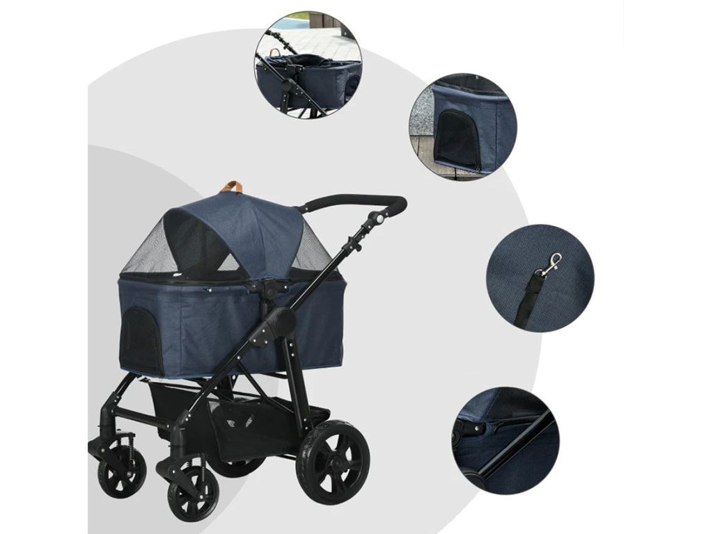 Kočárek pro psy 2v1 PAWHUT D00-123BU, tmavě modrý