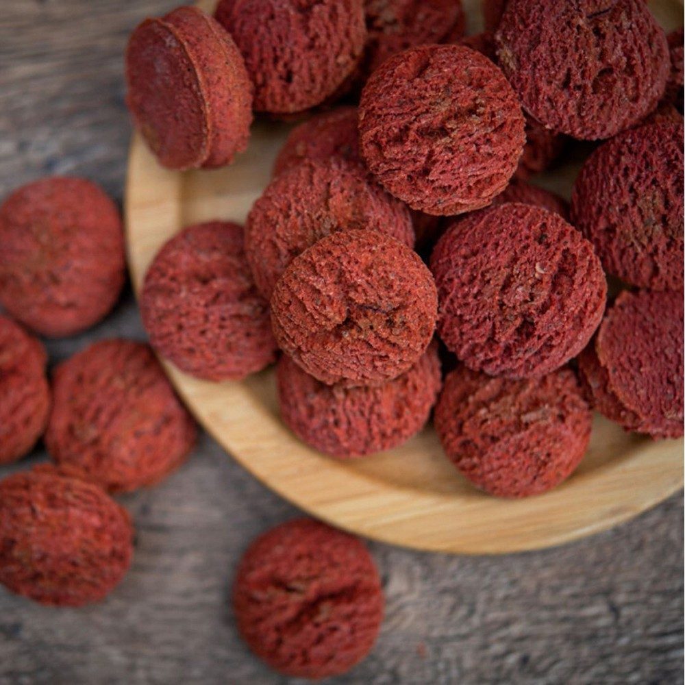 Složení: cizrnová a jáhlová mouka (pomalu lisovaná za studena), červená řepa, jablečné výlisky a vaječná melanž