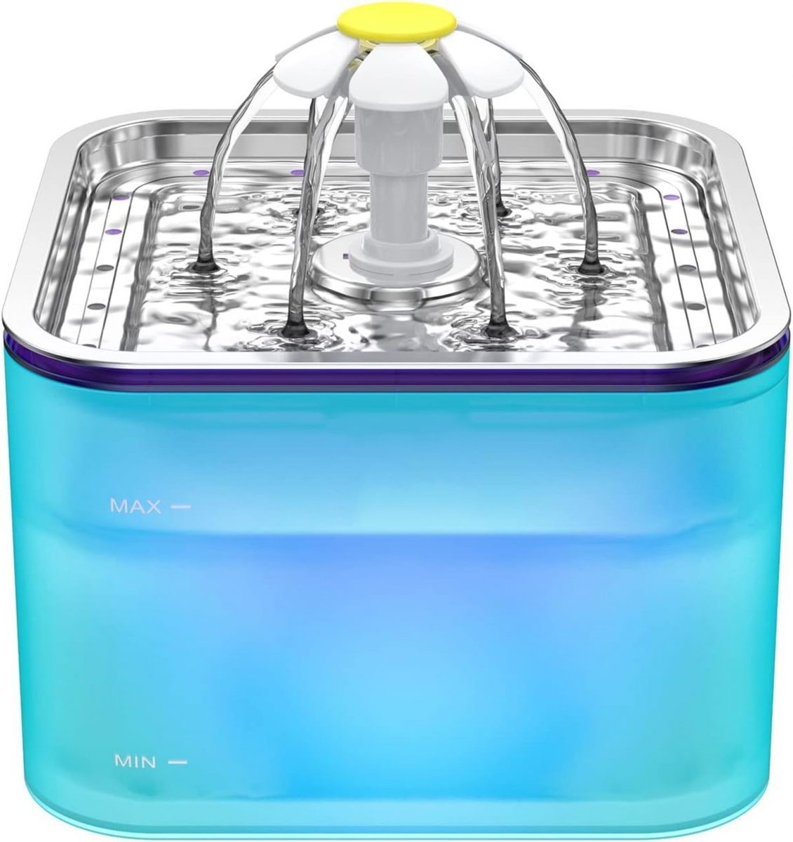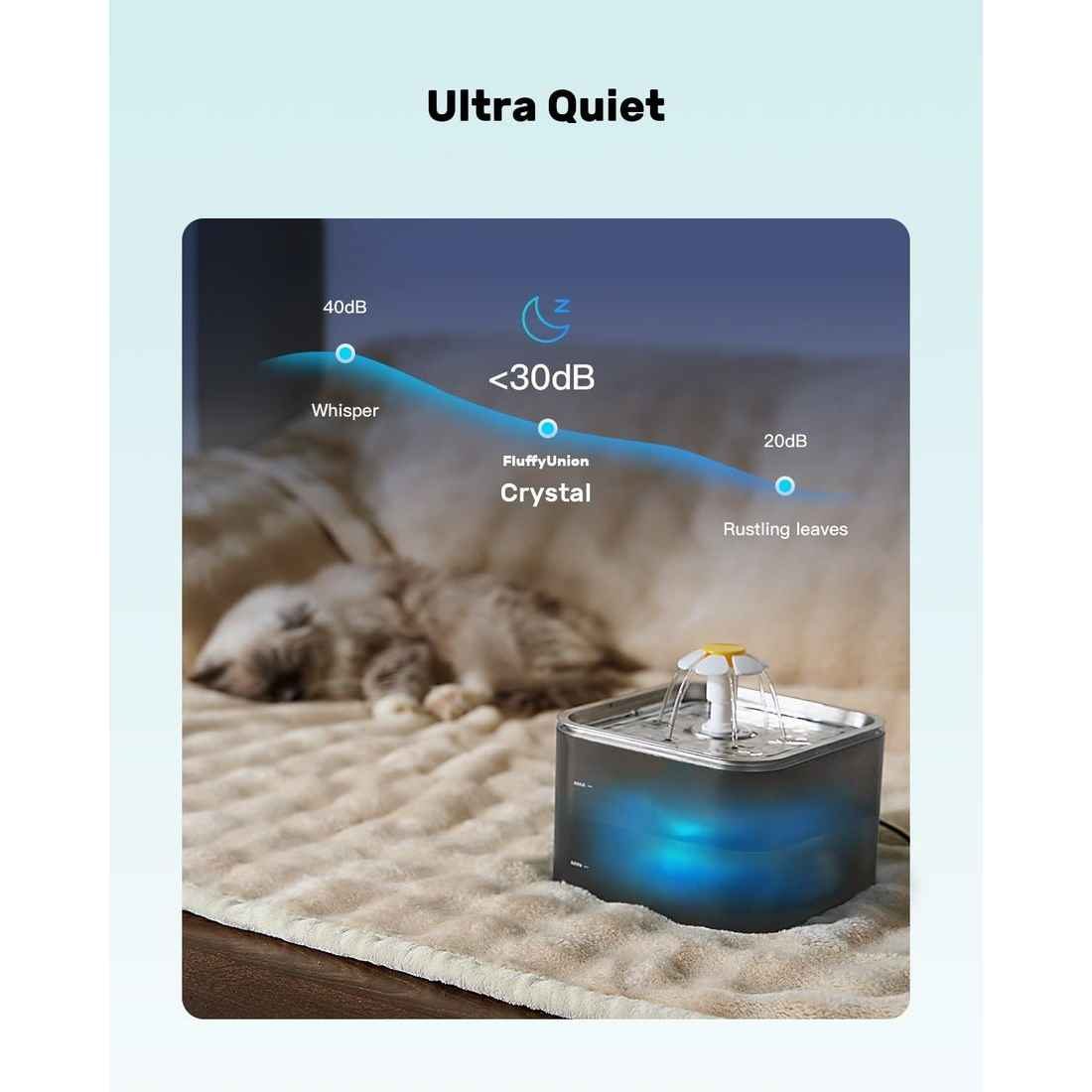Stylová fontánka v noci krásně svítí, takže váš mazlíček vždycky najde cestu k čisté filtrované vodě. Fontána vody je vybavena nejnovějším lehkým nízkotlakým čerpadlem, které je velmi tiché, a nebude vás rušit. Pracuje pod 30 dB, takže ji slyšíte méně než šepot. Fontána zajistí čerstvou okysličenou vodu po celý den a podporuje tak pitný režim. Pravidelný přísun čerstvé vody je prevencí proti onemocněním močových cest a močových kamenů.