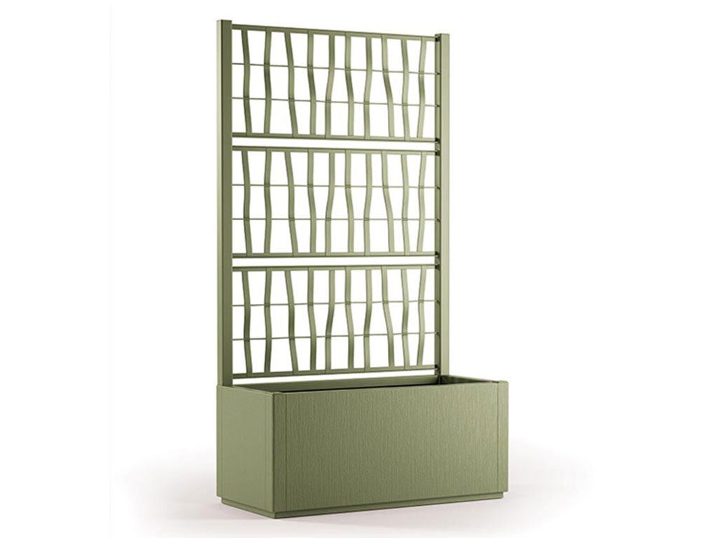 Truhlík s mřížkou, drenážním dnem, pro venkovní použití, z polypropylenu, barva olivově zelená, o objemu 80l, rozměry 80x36x142cm.