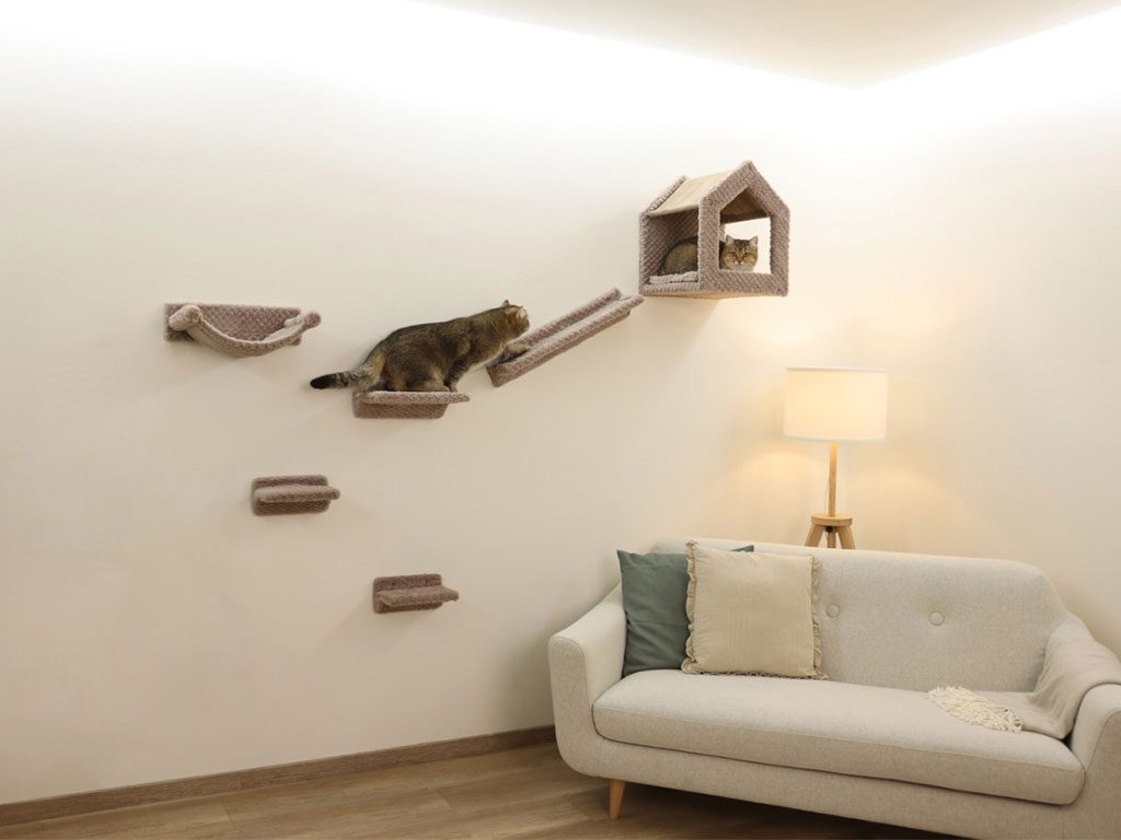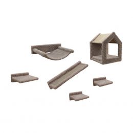 Tvoří jej soustava šesti částí, které se dají namontovat na stěnu podle vaší fantazie. Nástěnné škrabadlo nabízí vaším kočkám klidné místo k odpočinku, šplhání, škrábání a hraní.