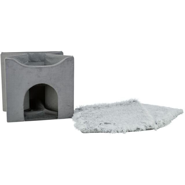 Kukaň sametová se střešním lůžkem. Barva: šedá, černá, Materiál: Umělé vlákno, Mikroplyš/plyš, kožešina