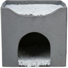Kukaň HARVEY sametová se střešním lůžkem, 38 x 38 x 38 cm, šedá/bíločerná