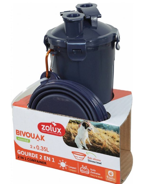 Lahev 2v1+ 2 misky BIVOUAK 2x350ml modrá Zolux