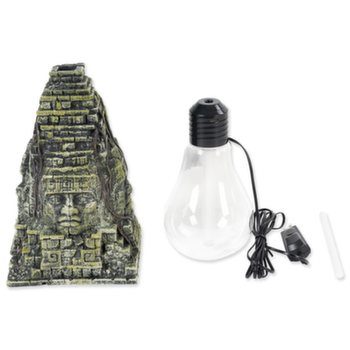Vnitřní mlhovací systém v designu starověkých civilizací Latinské Ameriky. Zajišťuje optimální vlhkost v tropických a subtropických teráriích. Atraktivní design pyramidy starověkých civilizací, hodící se do tropických terárií. Zvyšuje vlhkost v teráriu. Ideální pro terarijní chov plazů a obojživelníků. Automatické vypnutí po nepřetržité práci po dobu delší než 6 hodin. Nezávislý přepínač na napájecím zdroji USB pro snadnou obsluhu. Kapacita vody 400 ml. Snadné doplňování vody. Rozměry 12,5 x 12 x 19,5 cm