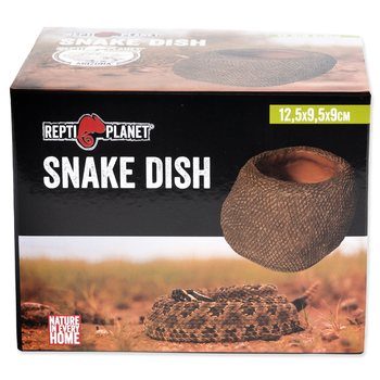 Miska na vodu pro plazy s designem vhodným obzvláště pro hady. Široká základna a váha misky zabraňuje převržení zvířetem. Zároveň se do ní díky velkému objemu vejde hodně vody. Vnitřní plocha je stříkaná, tím pádem minimalizuje tvorbu bakterií, velice dobře se čistí, neulpívají na ní nečistoty, a tak se i snadno dezinfikuje. Vnější plocha má hrubý vzor, který je hadům nápomocný při obměně vnější části pokožky, kdy se mohou o misku třít, a tím snadněji svléknout starou kůži. Některé menší druhy hadů, anebo mláďata se ráda do misky choulí, obzvláště pak v letních měsících, kdy jim voda poslouží k ochlazení. Vyrobeno z ekologického pryskyřicového materiálu. Rozměry 12,5 x 9,5 x 9 cm