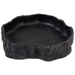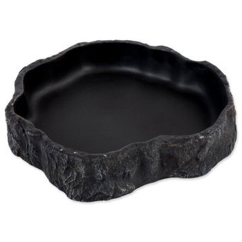 Miska na vodu či krmivo pro plazy, obojživelníky a další druhy zvířat, v černém designu. Atraktivní černý design, hodící se obzvláště k tmavým pískům a substrátům. Široká základna a váha misky zabraňuje převržení zvířetem. Vnitřní plocha je stříkaná, tím pádem minimalizuje tvorbu bakterií, velice dobře se čistí, neulpívají na ní nečistoty, a tak se i snadno dezinfikuje. Design umožňuje nejen pití, ale také stočení uvnitř misky. Některé menší druhy hadů, anebo mláďata se ráda do misky choulí, obzvláště pak v letních měsících, kdy jim voda poslouží k ochlazení. Vyrobeno z ekologického pryskyřicového materiálu. Rozměry 15,5 x 14 x 3,4 cm