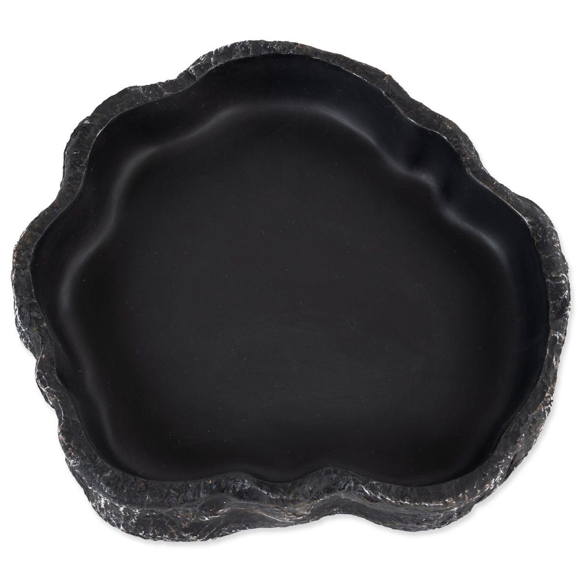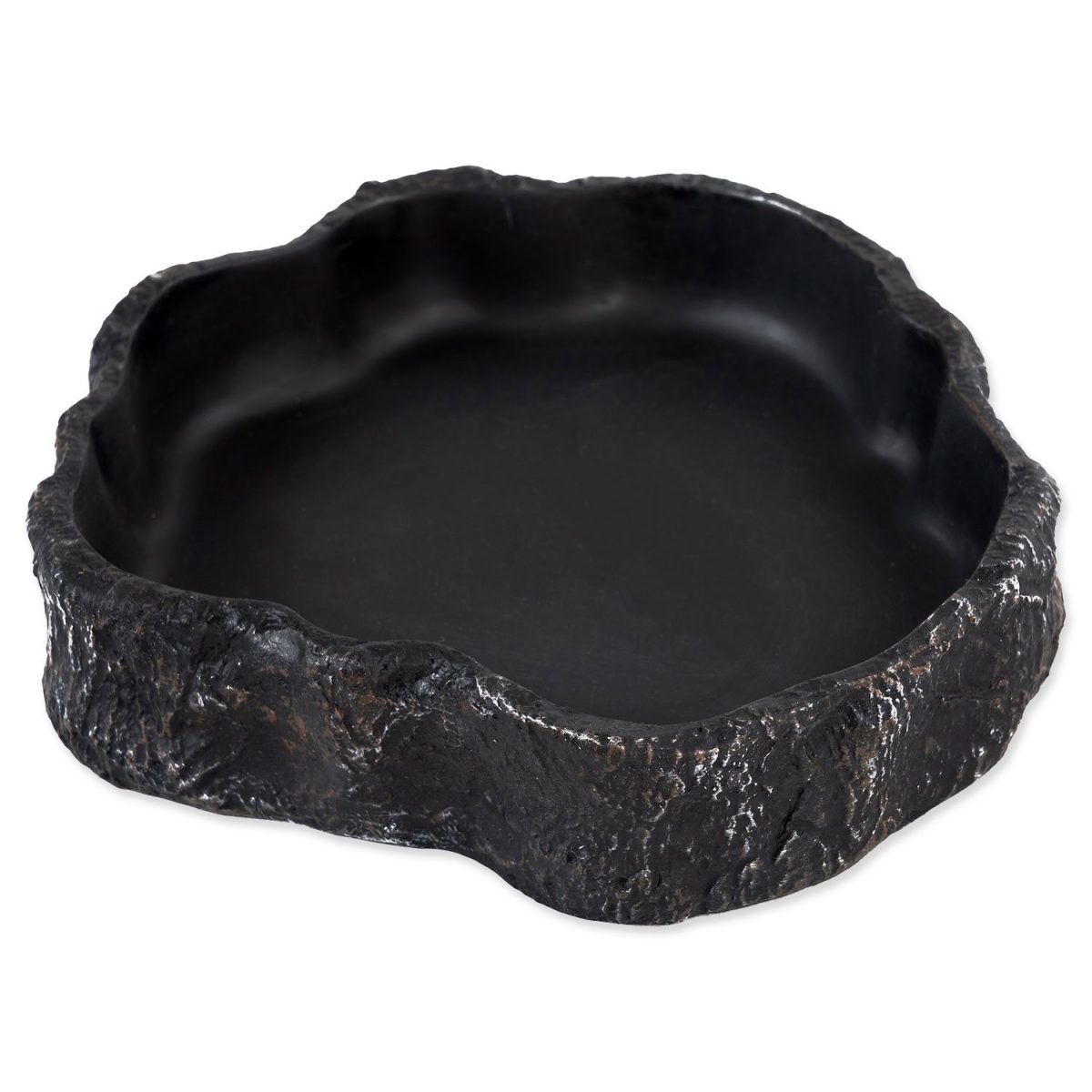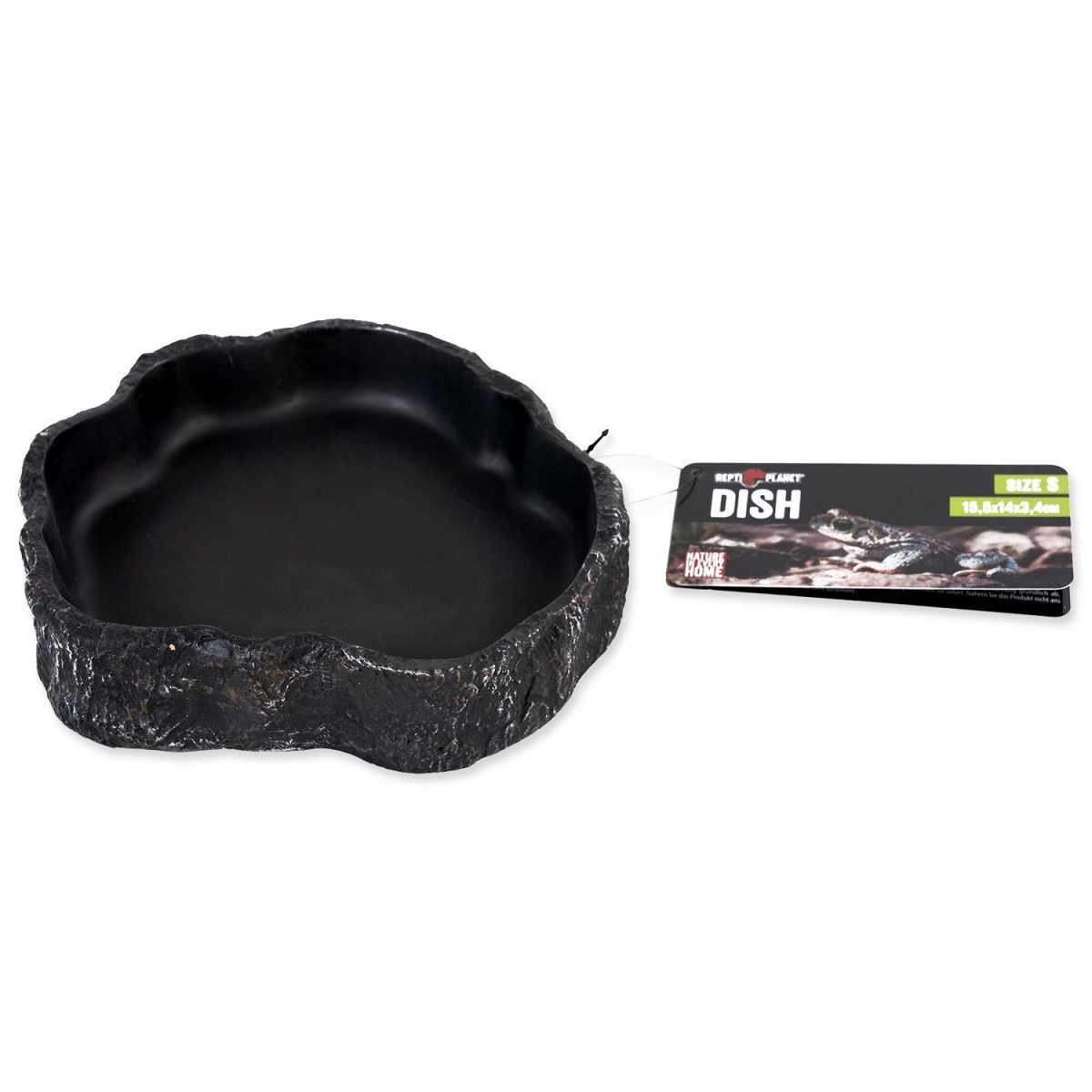 Miska na vodu či krmivo pro plazy, obojživelníky a další druhy zvířat, v černém designu. Atraktivní černý design, hodící se obzvláště k tmavým pískům a substrátům. Široká základna a váha misky zabraňuje převržení zvířetem. Vnitřní plocha je stříkaná, tím pádem minimalizuje tvorbu bakterií, velice dobře se čistí, neulpívají na ní nečistoty, a tak se i snadno dezinfikuje. Design umožňuje nejen pití, ale také stočení uvnitř misky. Některé menší druhy hadů, anebo mláďata se ráda do misky choulí, obzvláště pak v letních měsících, kdy jim voda poslouží k ochlazení. Vyrobeno z ekologického pryskyřicového materiálu. Rozměry 15,5 x 14 x 3,4 cm