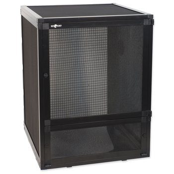 Prémiové síťované terárium vysoké kvality, ideální pro stromové plazy a obojživelníky, kteří vyžadují intenzivnější proudění vzduchu.? Síť na všech stranách terária (včetně přední a zadní stěny) zajišťuje maximální možnou ventilaci a přístup čerstvého vzduchu (vhodné pro horské chameleony, abronie a mnoho dalších plazů a obojživelníků). Intenzivní proudění vzduchu minimalizuje tvorbu plísní.? Specifikace Vysoce kvalitní černý hliníkový rám, odolný proti korozi (velmi lehká konstrukce). Nový patentovaný design pro snadnou montáž a demontáž během pár minut. Síťovaná výplň všech bočních i vrchních dílů je vyrobena z velmi kvalitní lakované nerezové oceli, odolné proti korozi. Síťované stěny a strop umožňují pronikání UVB záření. Proto světelný a tepelný zdroj můžete jednoduše umístit přímo k síťce. Vyklápěcí přední spodní díl usnadňuje čištění a manipulaci. Plastová vanička na dně umožňuje použití substrátu přímo v teráriu. Adaptér pro kabely je ve stejném designu jako u sestavitelných terárií značky Repti Planet. Integrované držáky na trysky rosících zařízení – plná kompatibilita s produkty Repti Planet. Rozměry 45 x 45 x 60 cm
