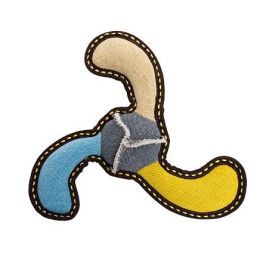 Bumerang jutový 27 cm, robustní aport pro psy, HIPHOP DOG, béžová/modrá/žlutá. - originální design
