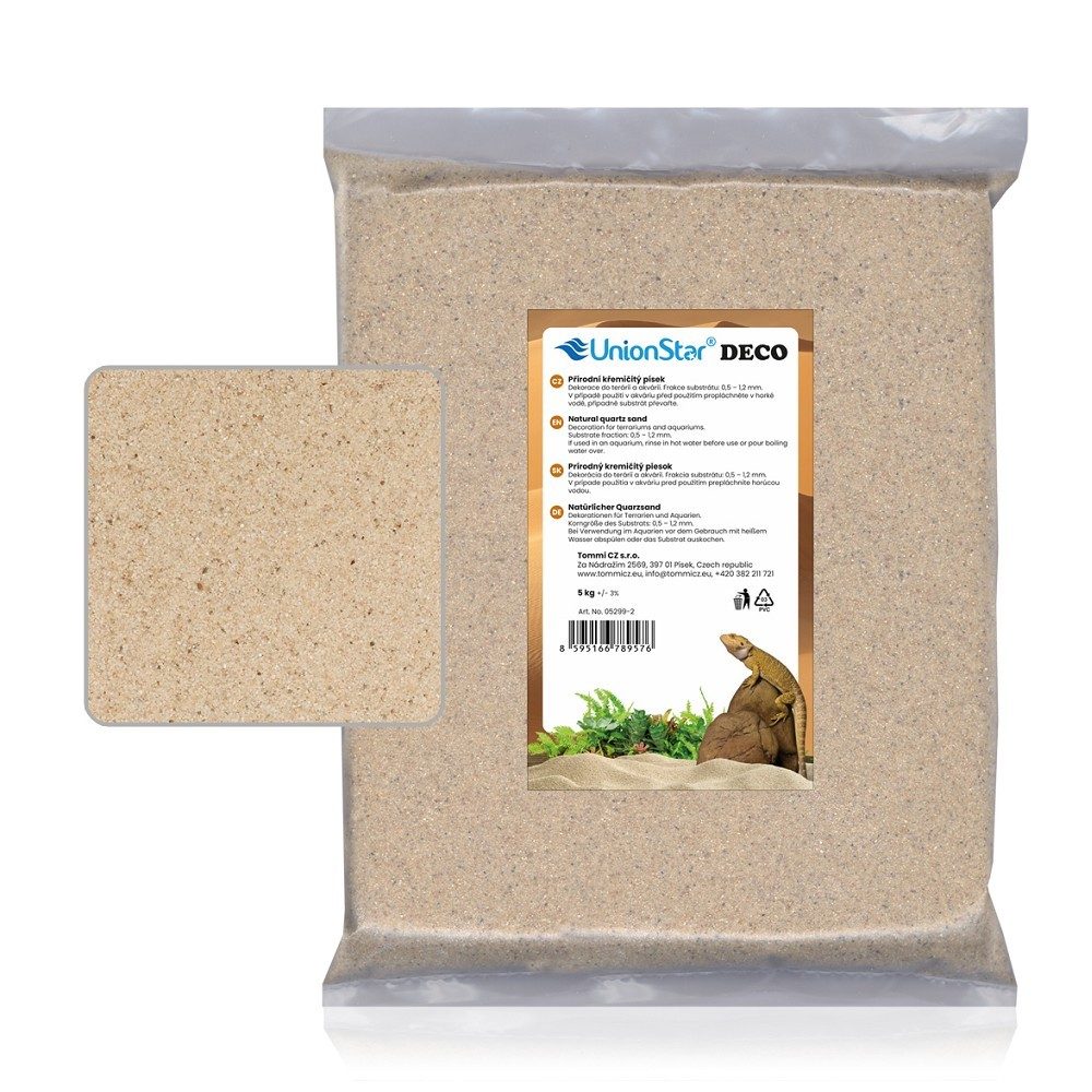 Terarijní písek DECO je vysoce kvalitní přírodní křemičitý substrát s jemnou frakcí 0,5–1,2 mm, dostupný v různých přírodních a atraktivních barevných odstínech.