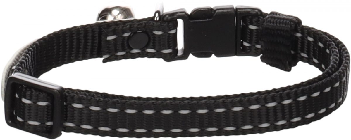 S tímto cool černým obojkem bude Vaše kočka hvězdou nejen na výstavě! Vyrobeno z nylonu, opatřeno reflexními proužky pro větší bezpečnost, rolničkou a popisovatelným štítkem. Obojek disponuje pohodlnou zacvakávací přezkou s bezpečnostní funkcí.