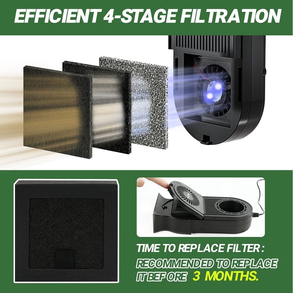 Tato čistička vzduchu je ideální volbou pro chovatele, kteří chtějí zajistit zdravé mikroklima v teráriu a snížit výskyt nežádoucích zápachů a škodlivin.