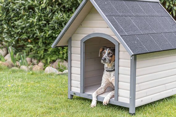 Natura bouda pro psa se sedlovou střechou, L: 96 x 105 x 112 cm, šedá. Barva: šedá, Materiál: Dřevo