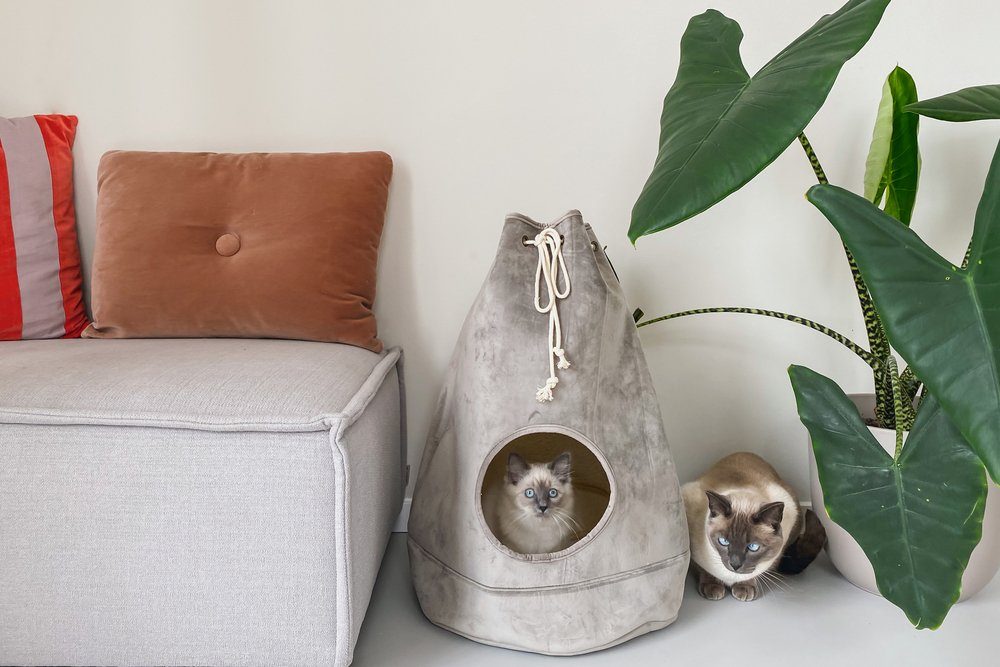 Stylový domeček pro kočky s vyjimatelným polštářem.