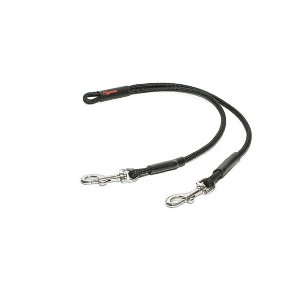 Provazová rozdvojka připojená k vodítku umožňuje venčení dvou psů najednou. Barva: černá