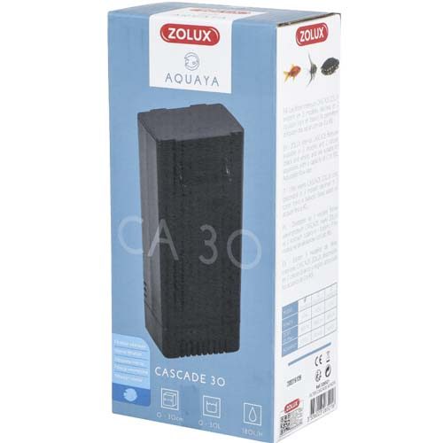 Vodopádový filtr zolux lze použít v akváriích od 0 do 30 litrů. S výstupní tryskou na vodu, snadno se udržuje. Zahrnuté: středně modrá pěna CA30: filtrace velkých částic. Patrona CA30C ZEOCARB: dělá křišťálově čistou vodu a absorbuje zbytky léčiva. .Je ideální pro akvária do 30 litrů, tento filtr s přednastaveným průtokem se snadno používá a udržuje a ocení ho zejména milovníci akvária. Průtok 180 litrů / hodinu. : 3 W. Dodávané s 2 filtračními hmotami: Zeocarb Cascade 30 (pěna s aktivním uhlím na chemické čištění vody) a Foam Cascade 30 (modrá pěna umožňující mechanickou filtraci vody). Rozměry filtru: L 6 xp 4,5 xh 14 cm. Barva: černá.