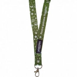 Lanyard (klíčenka) s logem Yoggies a s veselými kreslenými motivy spojenými s kočkou a psem. Délka 47 cm včetně kovové spony.