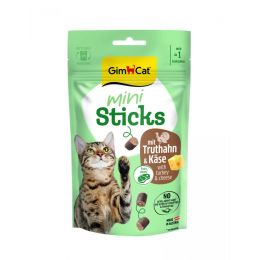 GimCat Mini Sticks s krůtím masem a sýrem jsou neodolatelné chutné pamlsky s vysokým obsahem masa pro vaši kočku.