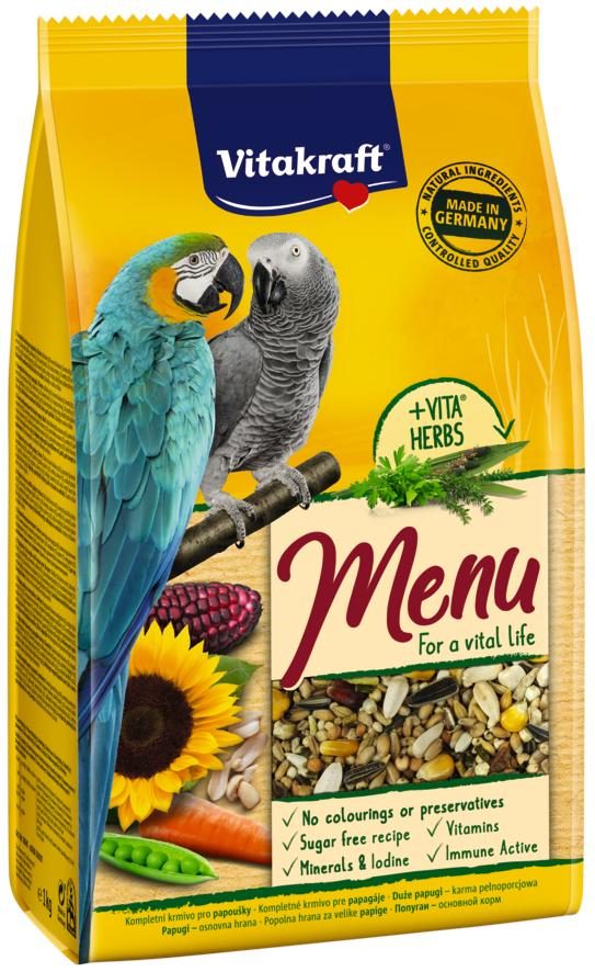 Ideální krmivo pro všechny velké papoušky s jódem a vitamíny.
