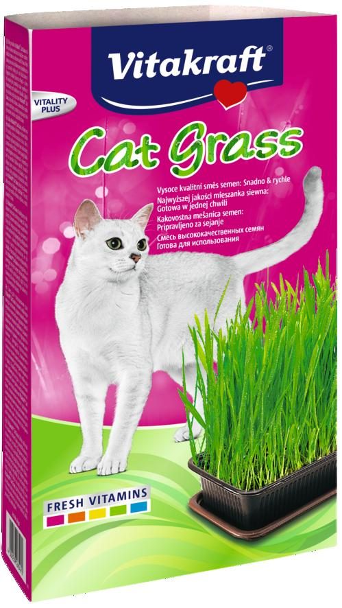 Tráva pro kočky. Specifické vlastnosti: Indoor - kočky v domácnosti, Outdoor - kočky venku, Stáří kočky: Koťátko, Senior, Dospělá